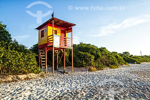 Guarita de salva-vidas na orla da Praia da Armação do Pântano do Sul - Florianópolis - Santa Catarina (SC) - Brasil