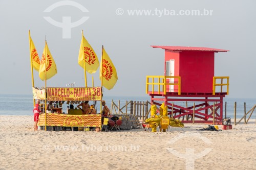 Barraca de comércio e guarita de salva-vidas na Praia de Copacabana - Rio de Janeiro - Rio de Janeiro (RJ) - Brasil