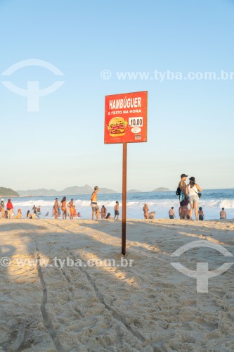 Placa para venda de hamburguer na Praia de Copacabana - Rio de Janeiro - Rio de Janeiro (RJ) - Brasil