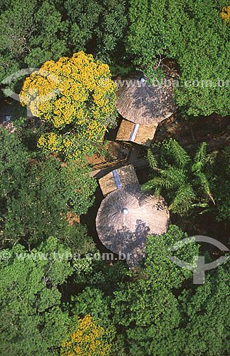 •  Imagem aérea de chalés do Hotel de Selva Acajatuba - margens do Rio Negro - município de Iranduba - AM - outubro de 2001  - Iranduba - Amazonas - Brasil
