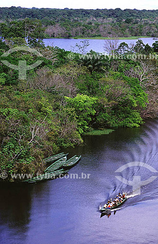 •  Turistas em passeio de canoa pelo rio Ariaú -