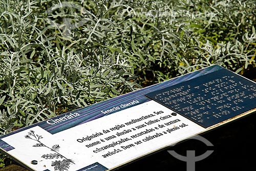 Assunto: Placa de identificação de planta com tradução para o sistema de leitura Braile / Local: Jardim Botânico - Rio de Janeiro (RJ) - Brasil / Data: 11/2010