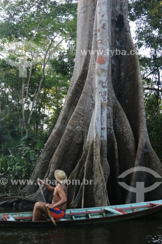Ribeirinho observa Sumaúma (Ceiba pentandra) em Igapó - Iranduba - Amazonas (AM) - Brasil