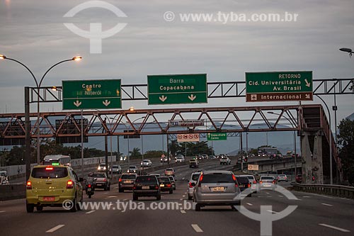 •  Tráfego na Linha Vermelha próximo à Ilha do Fundão durante o anoitecer  - Rio de Janeiro - Rio de Janeiro (RJ) - Brasil