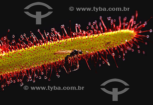 Assunto: Drosera (Drosera capensis) - planta carnívora com uma abelha / Local: / Data: 1995