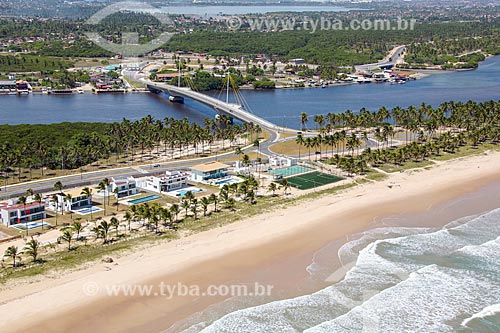 Foto aérea da Praia do Paiva com a Ponte Arquiteto Wilson Campos Júnior - também conhecida como Ponte do Paiva - sobre o Rio Jaboatão - Cabo de Santo Agostinho - Pernambuco (PE) - Brasil