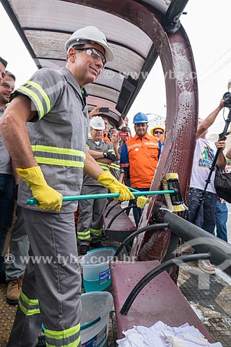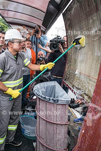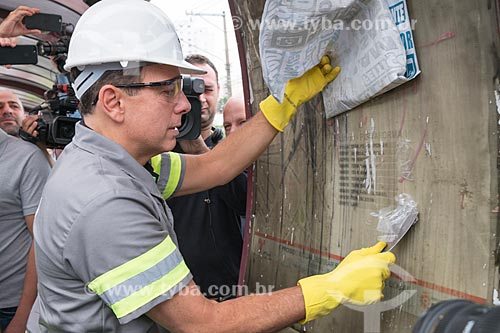 Prefeito João Doria Júnior realizando a limpeza de ponto de ônibus - ação do programa Cidade Linda - São Paulo - São Paulo (SP) - Brasil