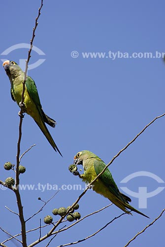 Periquito-rei (Aratinga aurea) - também conhecido como Jandaia Rei, Jandaia Estrela, Mocinha ou Jandaia áurea - Parque Nacional das Emas - GO - Brasil. Data: 2005. O Parque é Patrimônio Mundial pela UNESCO desde 16-12-2001