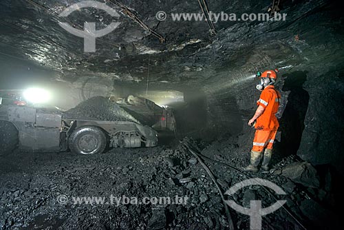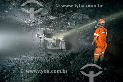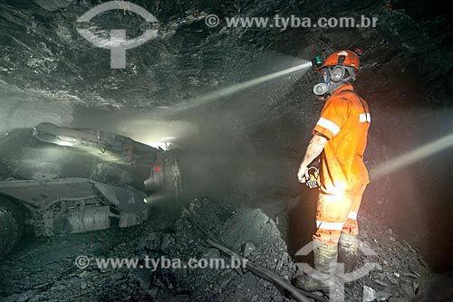•  Homem operando minerador contínuo - Mina Fontanella - Carbonífera Metropolitana  - Treviso - Santa Catarina - Brasil