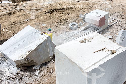 Extração de bloco de mármore com máquina de fio diamantado - São José do Seridó - Rio Grande do Norte (RN) - Brasil