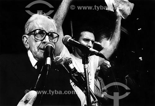 Assunto: Sobral Pinto e André Franco Montoro no Comício das Diretas em frente a Igreja de Nossa Senhora da Candelária / Local: Rio de Janeiro (RJ) - Brasil / Data: 04/1984