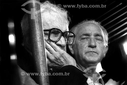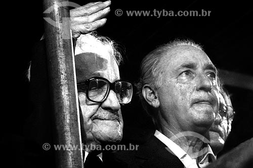•  Assunto: Sobral Pinto e André Franco Montoro no Comício das Diretas em frente a Igreja de Nossa Senhora da Candelária / Local: Rio de Janeiro (RJ) -  Brasil / Data: 04/1984