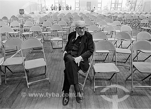 Assunto: Advogado Heráclito Fontoura Sobral Pinto (1893 - 1991) sentado em sala de aula aguardando a hora de realizar uma conferência - PUC Rio / Local: Gávea - Rio de Janeiro (RJ) - Brasil / Data: 1983