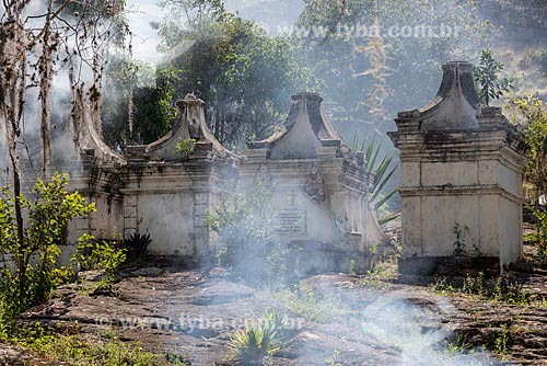 Fumaça perto de cemitério em estilo bizantino - Andaraí - Bahia (BA) - Brasil