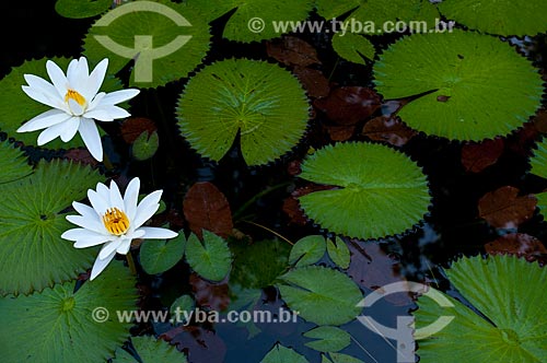 •  Detalhe de lírios dágua (Nymphaea spp.) no Parque do Museu Paraense Emílio Goeldi  - Belém - Pará (PA) - Brasil