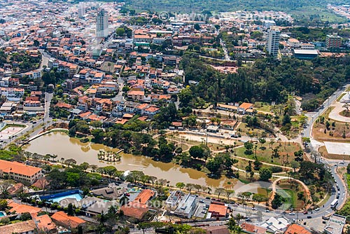 Foto aérea do Centro de Convenções Victor Brecheret com o Lago do Major à esquerda - Atibaia - São Paulo (SP) - Brasil