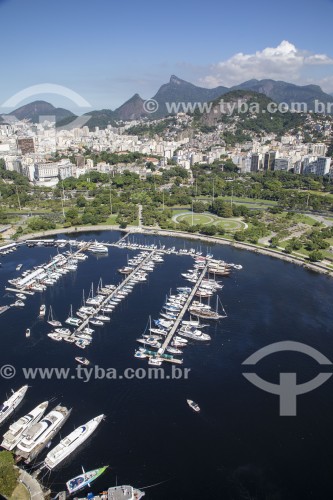 • Vista aérea do Iate Clube do Rio de Janeiro com a Praia de Botafogo e o Cristo Redentor ao fundo  - Rio de Janeiro - Rio de Janeiro (RJ) - Brasil