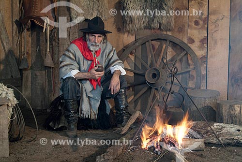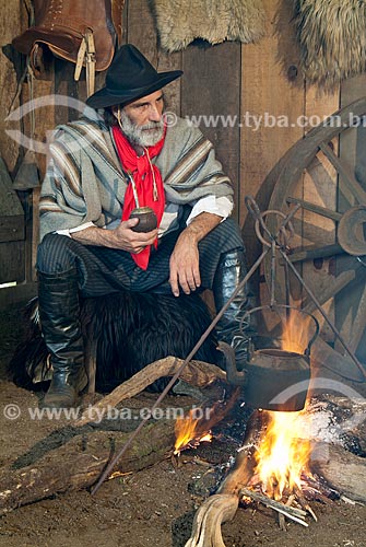 Gaúcho com indumentária típica e chimarrão - Canela - Rio Grande do Sul (RS) - Brasil