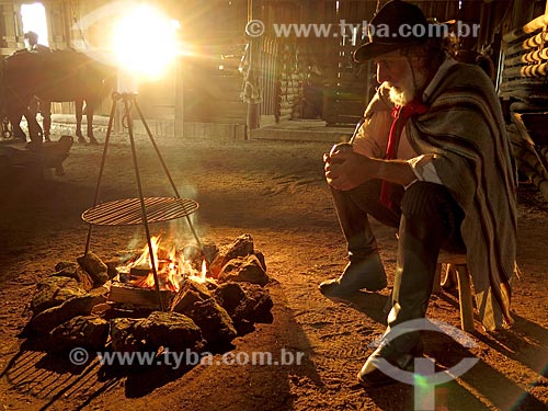 Gaúcho com indumentária típica e chimarrão - São Francisco de Paula - Rio Grande do Sul (RS) - Brasil