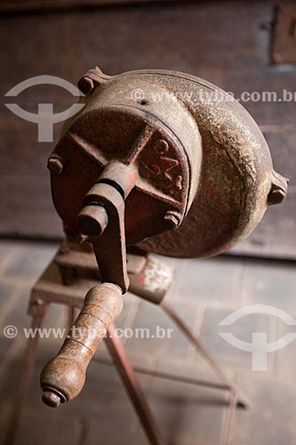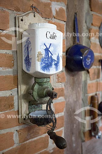 Detalhe de moedor de café no interior da cozinha - parte social da casa - do Museu Nacional de Imigração e Colonização (1870) - Joinville - Santa Catarina (SC) - Brasil