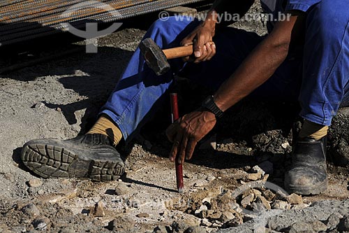 Detalhe de mão de trabalhador da construção civil - Belo Horizonte - Minas Gerais (MG) - Brasil