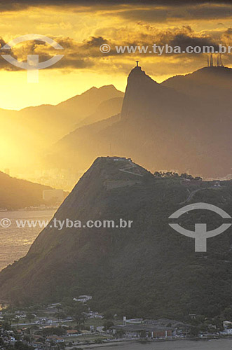 •  Vista do Rio de Janeiro ao entardecer com a estátua do Cristo Redentor sobre o Corcovado ao fundo  - RJ - Brasil  - Rio de Janeiro - Rio de Janeiro - Brasil