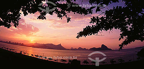 Pôr-do-sol no Rio de Janeiro visto do Parque da Cidade de Niterói - RJ - Brasil - Rio de Janeiro - Rio de Janeiro - Brasil