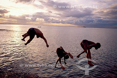 •  Meninos brincando de mergulhar no rio