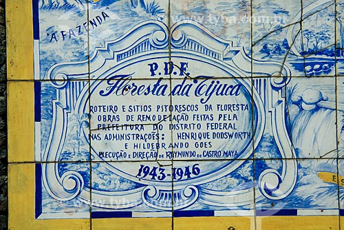 Assunto: Detalhe do Painel de Azulejos com o mapa da Floresta da Tijuca (1946) próximos à Cascatinha Taunay / Local: Rio de Janeiro (RJ) - Brasil / Data: 08/2013
