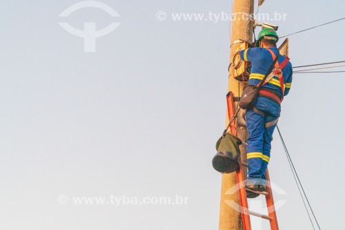 Homem fazendo manutenção de câmeras de vigilância - Arpoador - Rio de Janeiro - Rio de Janeiro (RJ) - Brasil