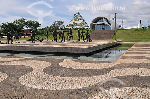 Monumento aos Dezoito do Forte - com o Memorial Luís Carlos Prestes (1996) - também conhecido como Memorial Coluna Prestes - ao fundo - Palmas - Tocantins (TO) - Brasil