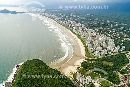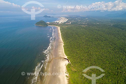 Foto feita com drone da Praia de Itaguaré com o Morro de São Lourenço ao fundo - Bertioga - São Paulo (SP) - Brasil