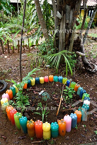 •  Reaproveitamento de garrafas PET e pneus na criação de horta medicinal no jardim da sede da Fundação Almerinda Malaquias - ONG Organização não-governamental  - Novo Airão - Amazonas (AM) - Brasil