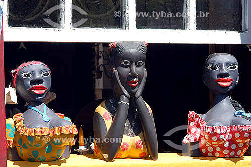 Artesanato em barro: Namoradeiras (bonecas que ficam expostas pelas janelas dos casarios da cidade) - Tiradentes - MG - Brasil O conjunto arquitetônico e urbanístico da cidade é Patrimônio Histórico Nacional desde 20-04-1938. - Tiradentes - Minas Gerais - Brasil