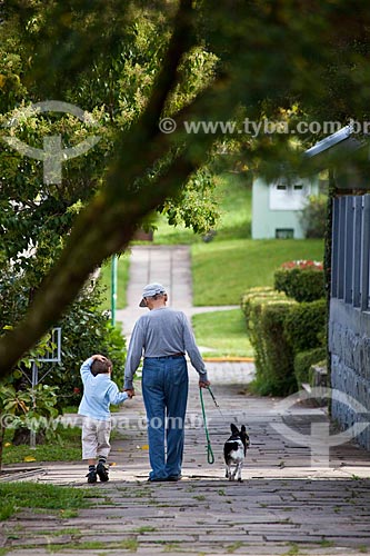 •  Assunto: Idoso passeando com criança e cachorro / Local: Canela - Rio Grande do Sul (RS) - Brasil / Data: 03/2011