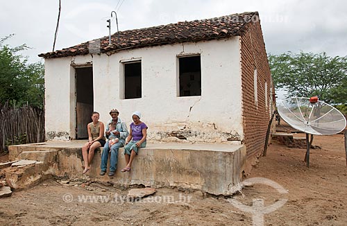 José Francisco da Silva com sua esposa, filha e neto na frente de sua casa nova - Desapropriados para a contrução do Reservatório Cacimba Nova - obra da transposição do Rio São Francisco - Custódia - Pernambuco - Brasil