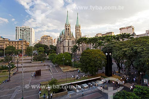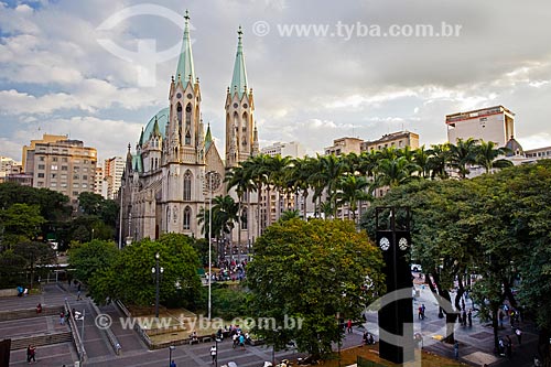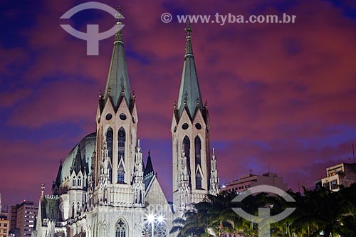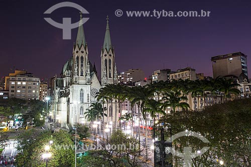 •  Praça da Sé com a Catedral da Sé (1954) ao anoitecer - Catedral Metropolitana Nossa Senhora da Assunção  - São Paulo - São Paulo (SP) - Brasil
