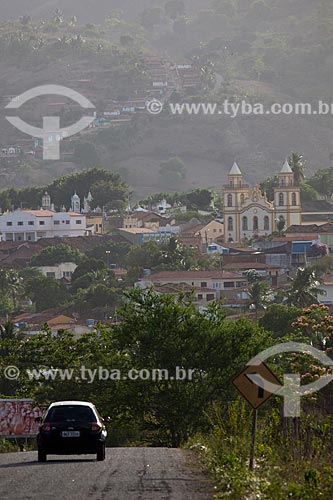 Vista da cidade de Alagoa Grande - cidade natal do compositor Jackson do Pandeiro - a partir da Rodovia PB-079 com Igreja de Nossa Senhora da Boa Viagem (1868) à direita - Alagoa Grande - Paraíba - Brasil