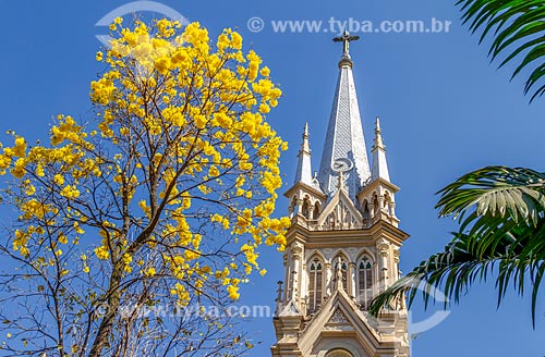 •  Detalhe de Ipê-amarelo e o campanário da Catedral de Nossa Senhora da Boa Viagem (1932)  - Belo Horizonte - Minas Gerais (MG) - Brasil