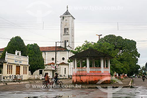 Praça na cidade de Soure com a Igreja Matriz de Nossa Senhora da Consolação ao fundo - Soure - Pará (PA) - Brasil