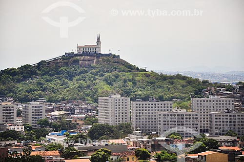 Vista da Igreja de Nossa Senhora da Penha (Século XVIII) a partir de gôndola do Teleférico do Alemão - operado pela SuperVia - Rio de Janeiro - Rio de Janeiro (RJ) - Brasil