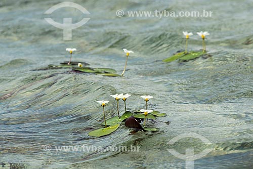 Detalhe da Estrela-Branca (Nymphoides humboldtiana) em lagoa no Parque Nacional dos Lençóis Maranhenses - Santo Amaro do Maranhão - Maranhão (MA) - Brasil