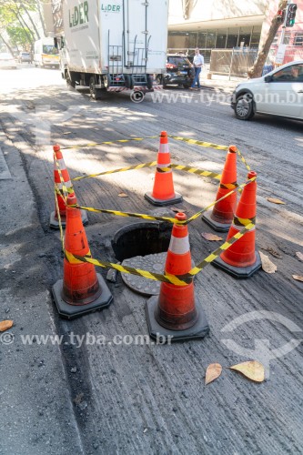 • Cones de sinalização durante manutenção de bueiro - Rua Francisco Otaviano - Rio de Janeiro - Rio de Janeiro (RJ) - Brasil