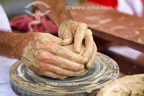 Assunto: Mãos de oleiro trabalhando na roda / Local: Florianópolis - Santa Catarina - Brasil / Data: 03/2010