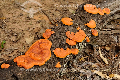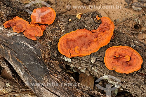•  Detalhe do fundo Orelha-de-pau (Pycnoporus sanguineus) em um tronco  - Serranópolis - Goiás (GO) - Brasil