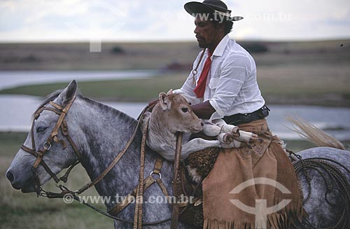 Gaúcho em traje tí­pico conduzindo gado - Alegrete - Rio Grande do Sul (RS) - Brasil