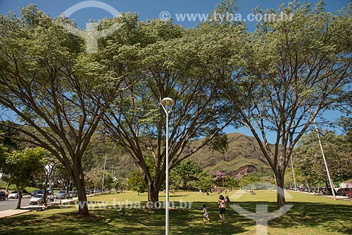 •  Pessoas brincando na Praça Israel Pinheiro - também conhecida como Praça do Papa - com a Serra do Curral ao fundo  - Belo Horizonte - Minas Gerais (MG) - Brasil
