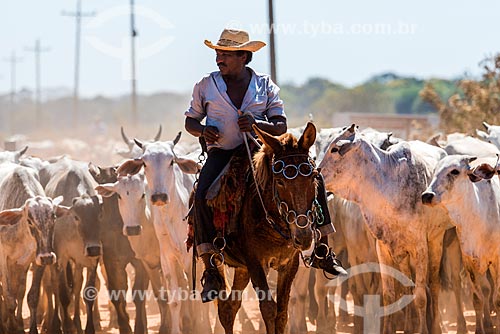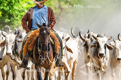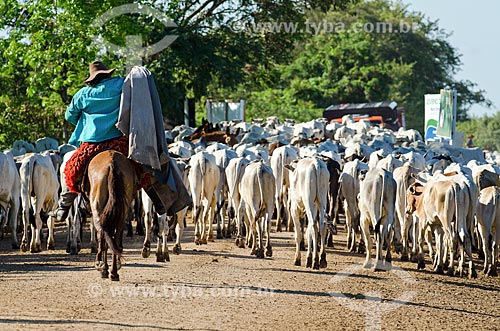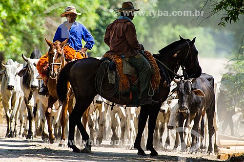 •  Boiadeiros conduzindo o gado na zona rural da cidade de Montes Claros  - Montes Claros - Minas Gerais (MG) - Brasil