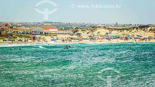 Banhistas e barcos na orla da praia na Península de Baleal - Concelho de Peniche - Distrito de Leiria - Portugal