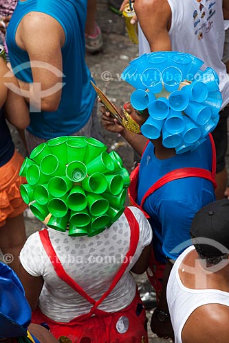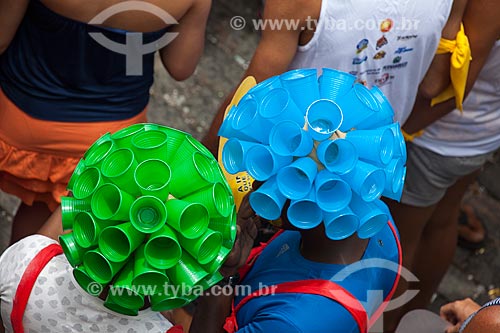 •  Assunto: Foliões com peruca feita utilizando copos de plástico reciclados / Local: Olinda - Pernambuco (PE) - Brasil / Data: 02/2013